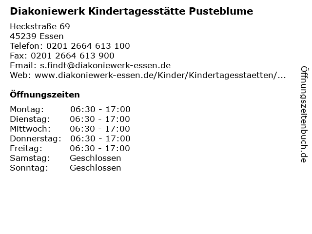 1 Evangelische integrative Kindertagesstätte Pusteblume (Entfernung: 4,72 km) Nikolaus-Ehlen-Straße 10, 42551 Velbert 2 Diakoniewerk Essen Haus Esmarchstraße Wohnheim für Menschen mit psychischer Erkrankung (Entfernung: 4,98 km) Esmarchstr. 20, 45147 Essen 4 Diakoniewerk Essen e.V. - Gesetzliche Betreuungen im Diakoniezentrum Mitte (Entfernung: 7,13 km) Lindenallee 55, 45127 Essen 6 |