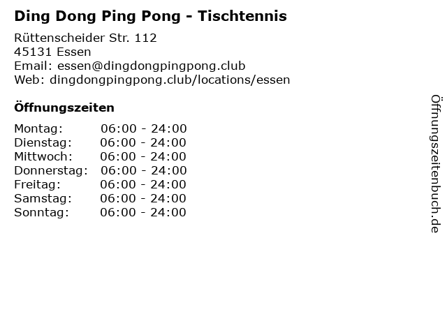 | Öffnungszeiten Ding Dong Ping Pong - Tischtennis in Essen anzeigen | |