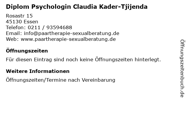 | Diplom Psychologin Claudia Kader-Tjijenda anrufen | |