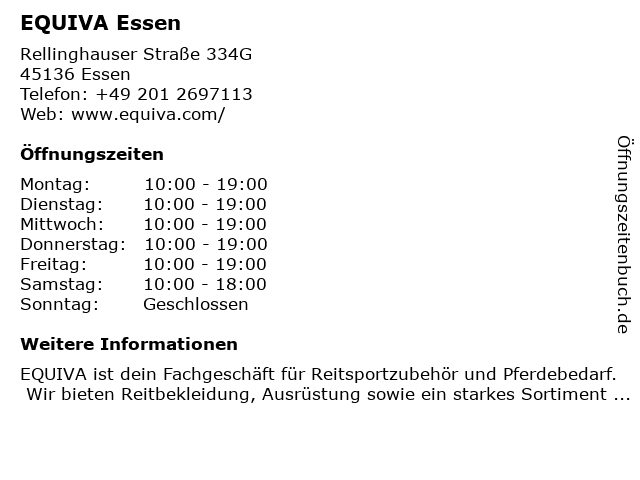 | Öffnungszeiten EQUIVA Essen in Essen anzeigen | |