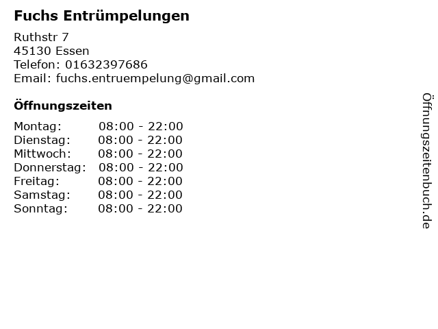 | Öffnungszeiten Fuchs Entrümpelungen in Essen anzeigen | |