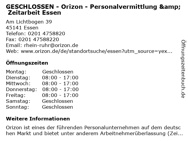 Branchen & Suchbegriffe zu GESCHLOSSEN - Orizon - Personalvermittlung & Zeitarbeit Essen:arbeitsvermittler, berufsberater, bewerbungsservice, essen, geschlossen, orizon, personalvermittlung, zeitarbeit, zeitarbeitsvermittlung |