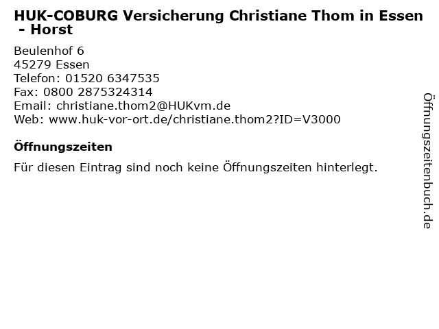 | HUK-COBURG Versicherung Christiane Thom in Essen - Horst anrufen | |