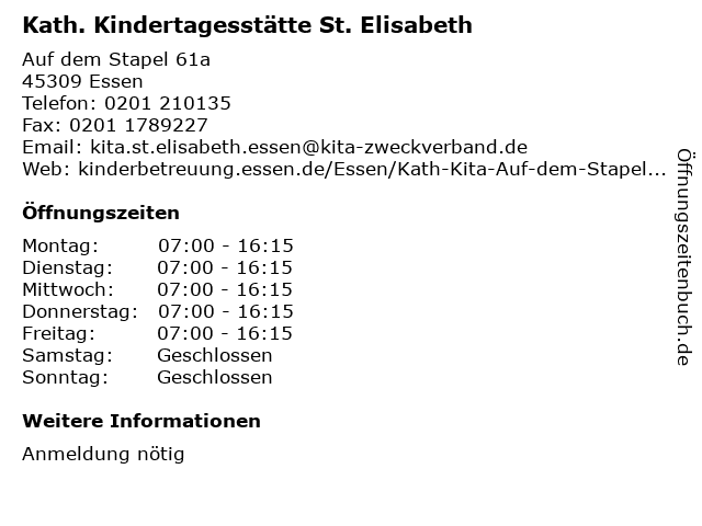 Branchen & Suchbegriffe zu Kath. Kindertagesstätte St. Elisabeth:elisabeth, erziehung, kath., kinderbetreuung, kindergarten, kindertagesstätte |