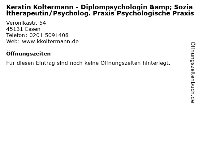 | Kerstin Koltermann - Diplompsychologin & Sozialtherapeutin/Psycholog. Praxis Psychologische Praxis anrufen | |
