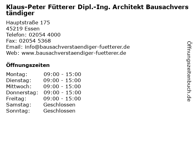 Branchen & Suchbegriffe zu Klaus-Peter Fütterer Dipl.-Ing. Architekt Bausachverständiger:architekt, bausachverständiger, dipl., fütterer, ing., klaus, peter |