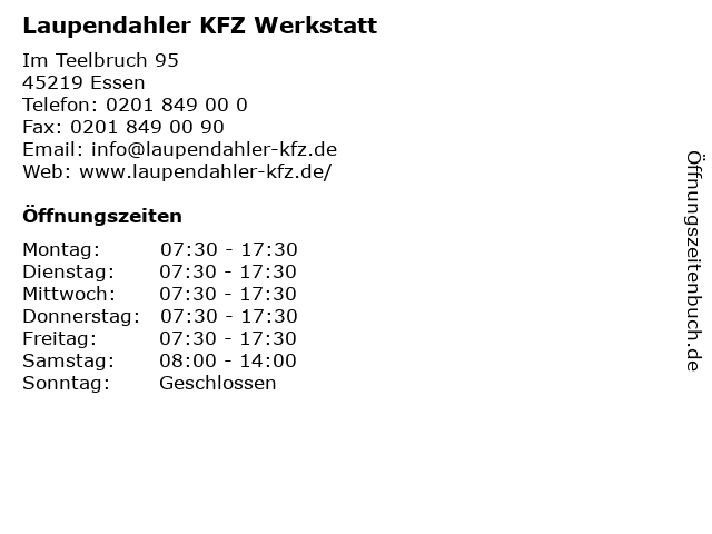 | Öffnungszeiten Laupendahler KFZ Werkstatt in Essen anzeigen | |