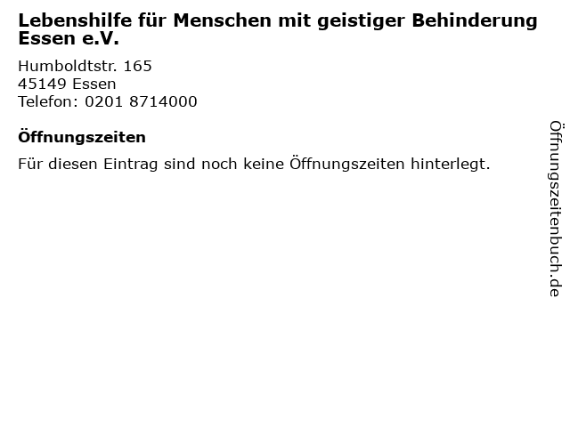 | Lebenshilfe für Menschen mit geistiger Behinderung Essen e.V. anrufen | |