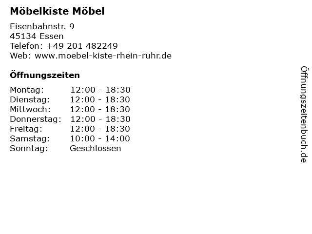 | Öffnungszeiten Möbelkiste Möbel in Essen anzeigen | |