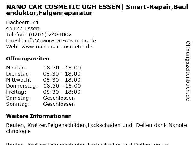 Branchen & Suchbegriffe zu NANO CAR COSMETIC UGH ESSEN| Smart-Repair,Beulendoktor,Felgenreparatur: alufelgenreparatur, auto ausbeulen, beulendoktor, car, cosmetic, dellendoktor, essen|, felgen-lackierung, felgenaufbereitung, felgenbeschichtungen, felgendoktor, felgenlackierungen, felgenreparatur, glas-reparatur und -austausch, lackdoktor, lackierungen, lackveredelung, leasing-aufbereitung, lederreparaturen, nachrüstung von anhängerkupplungen, nano, nanoversiegelung, ozon-geruchsbehandlung, repair, smart, smart-repair, ugh