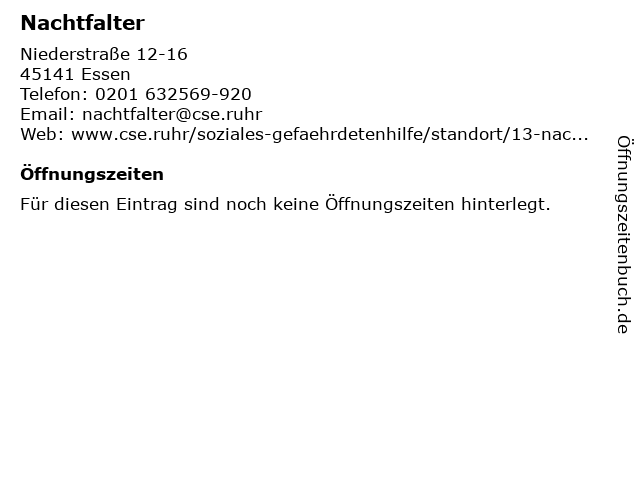 | Öffnungszeiten Nachtfalter in Essen anzeigen | |