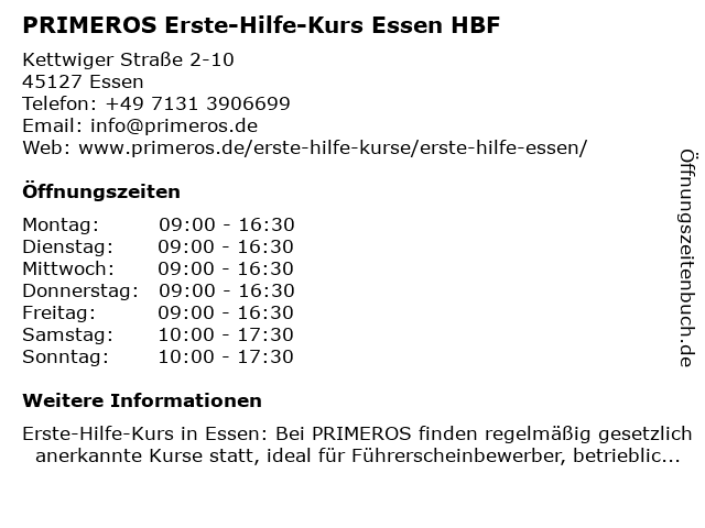 Branchen & Suchbegriffe zu PRIMEROS Erste-Hilfe-Kurs Essen HBF:erste, erste hilfe am unfallort, erste hilfe kurs, erste-hilfe, erste-hilfe-kurs, essen, führerschein sehtest, hbf, herz-lungen-wiederbelebung, herzinfarkt, hilfe, kurs, primeros, schlaganfall, stabile seitenlage, verbandmaterial, weiterbildung |