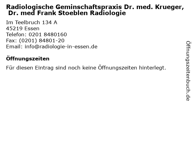 | Radiologische Geminschaftspraxis Dr. med. Krueger, Dr. med Frank Stoeblen Radiologie anrufen | |