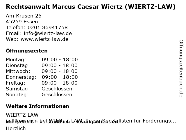 Branchen & Suchbegriffe zu Rechtsanwalt Marcus Caesar Wiertz (WIERTZ-LAW):buchhaltungsservice, caesar, law, marcus, rechtsanwalt, rechtsanwälte, steuerberatung, wiertz |