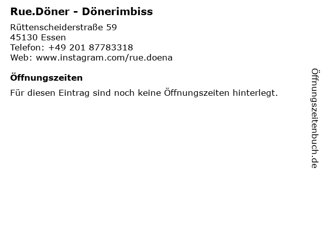 | Öffnungszeiten Rue.Döner - Dönerimbiss in Essen anzeigen | |