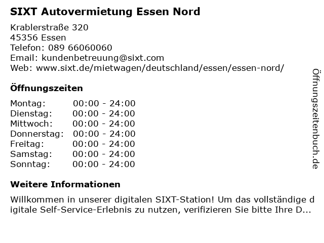 | Öffnungszeiten SIXT Autovermietung Essen Nord in Essen anzeigen | |
