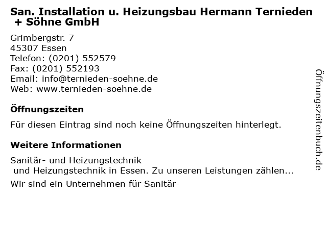 | San. Installation u. Heizungsbau Hermann Ternieden + Söhne GmbH anrufen | |