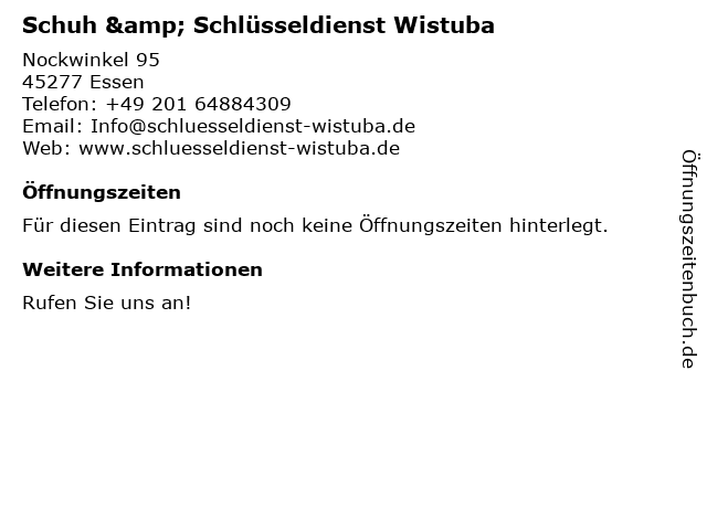 | Schuh & Schlüsseldienst Wistuba anrufen | |