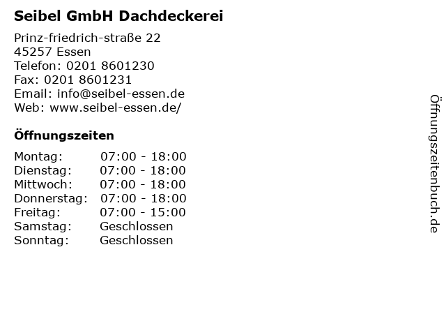 | Öffnungszeiten Seibel GmbH Dachdeckerei in Essen anzeigen | |