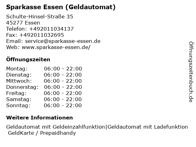 Öffnungszeiten Sparkasse Essen (Geldautomat)