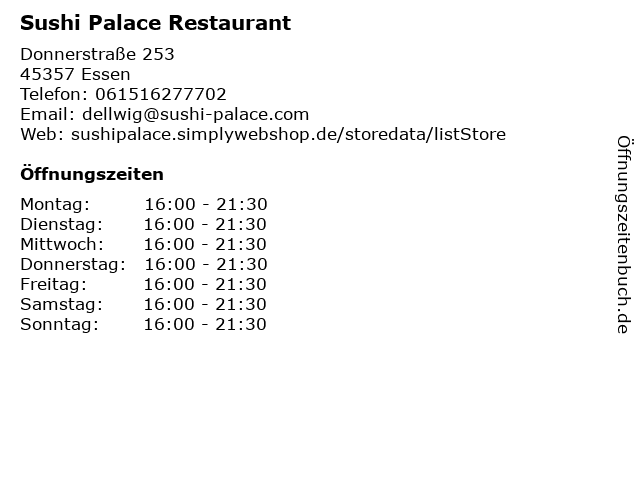 | Öffnungszeiten Sushi Palace Restaurant in Essen anzeigen | |