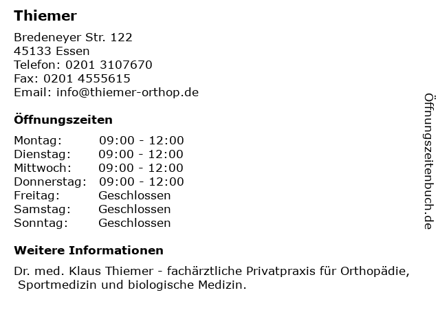 | Öffnungszeiten Thiemer in Essen anzeigen | |