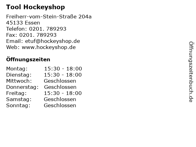 | Öffnungszeiten Tool Hockeyshop in Essen anzeigen | |