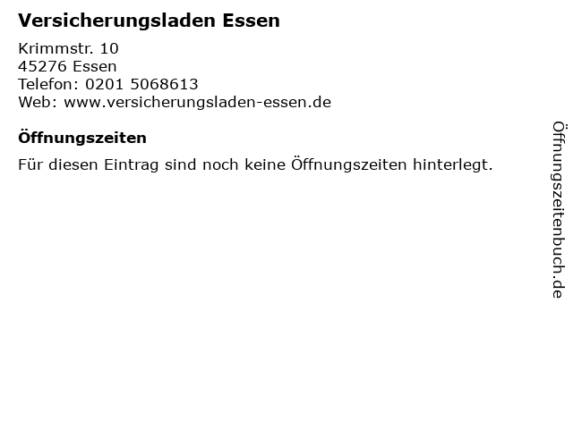 Öffnungszeiten Versicherungsladen Essen in Essen anzeigen | |