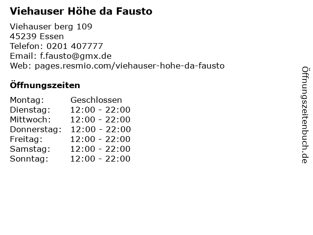 | Öffnungszeiten Viehauser Höhe da Fausto in Essen anzeigen | |