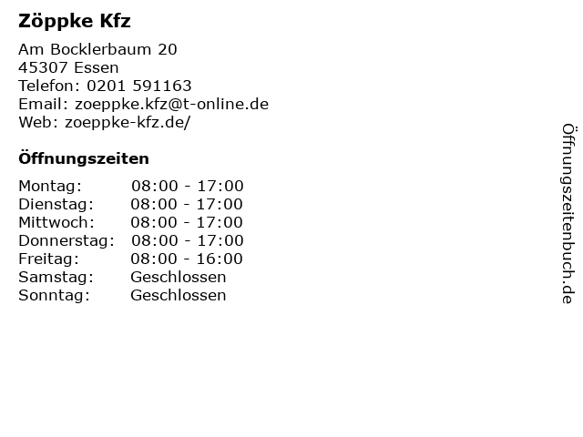 Öffnungszeiten Zöppke Kfz