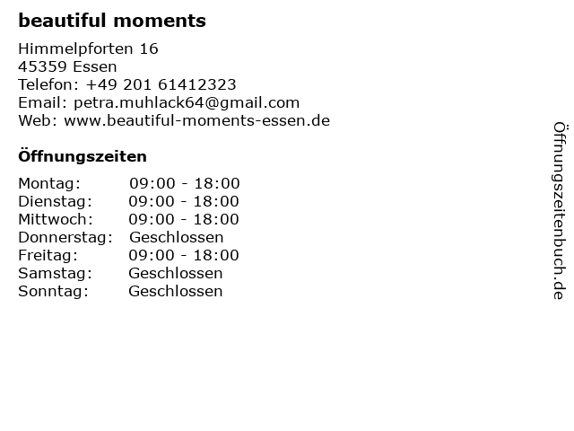 | Öffnungszeiten beautiful moments in Essen anzeigen | |