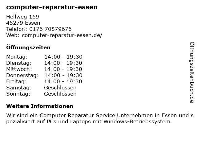 | Öffnungszeiten computer-reparatur-essen in Essen anzeigen | |