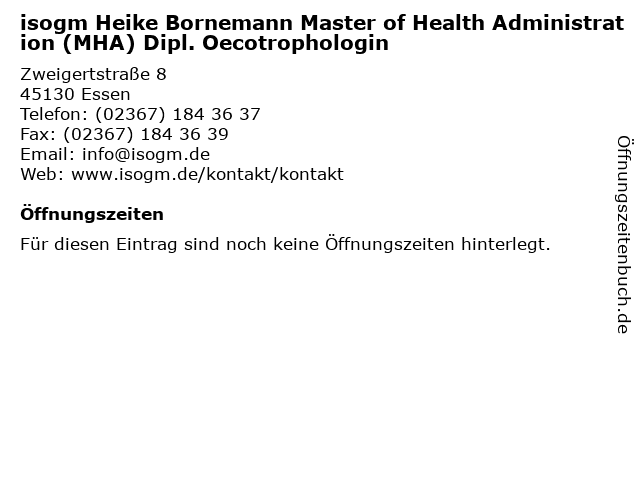 | isogm Heike Bornemann Master of Health Administration (MHA) Dipl. Oecotrophologin anrufen | |