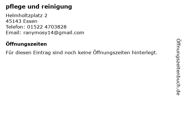 | Öffnungszeiten pflege und reinigung in Essen anzeigen | |