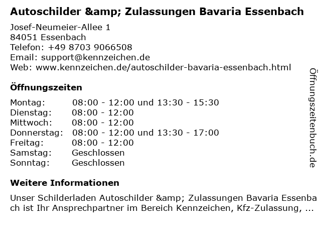Branchen & Suchbegriffe zu Autoschilder & Zulassungen Bavaria Essenbach:ausfuhrkennzeichen, autokennzeichen, autoschilder, bavaria, essenbach, funschilder, kennzeichen, kennzeichen prägen, kennzeichenverstärker, kfz-kennzeichen, kfz-versicherung, kfz-zulassung, kfz-zulassungsdienst, motorrad-kennzeichen, parkplatz kennzeichen, parkplatzschilder, rote kennzeichen, saisonkennzeichen, schildergeschäft, schilderladen, schilderpräger, zulassungen, zulassungsservice |