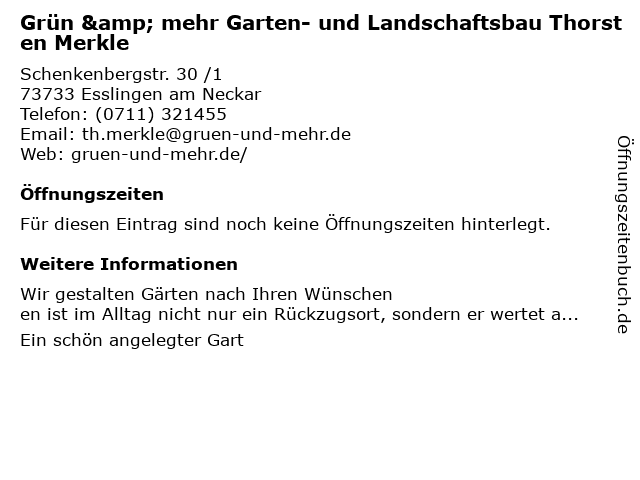 | Grün & mehr Garten- und Landschaftsbau Thorsten Merkle anrufen | |