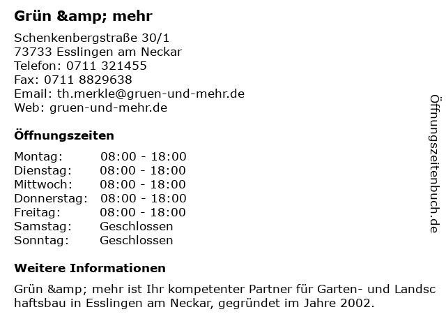 Öffnungszeiten Grün & mehr in Esslingen am Neckar anzeigen | |