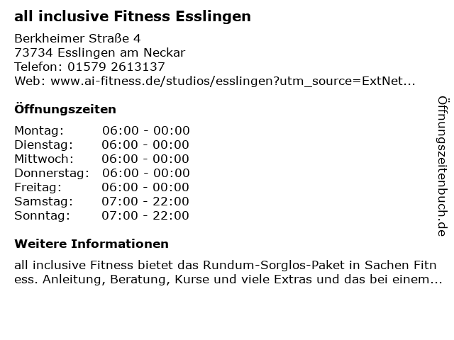 Branchen & Suchbegriffe zu all inclusive Fitness Esslingen:all, fitness, hallensport, inclusive, wellness |