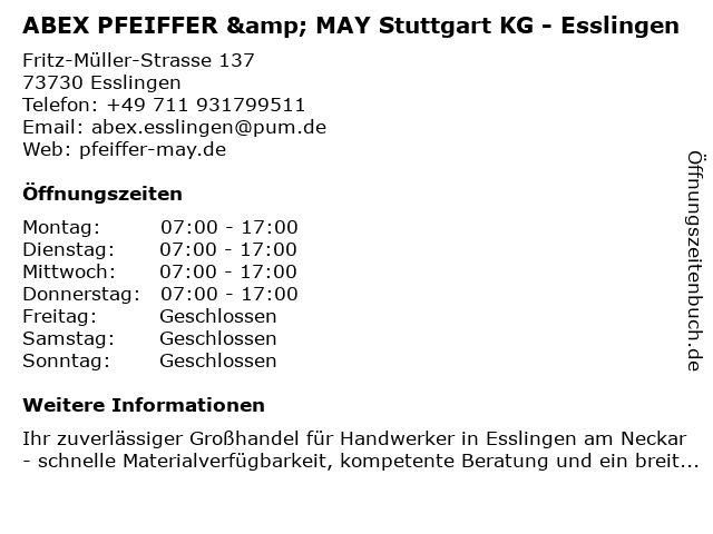 Branchen & Suchbegriffe zu ABEX PFEIFFER & MAY Stuttgart KG - Esslingen:abex, abholexpress, abholstandort haustechnik, abholstandort heizung, abholstation, baumarkt, baustoffhandel, bauzubehör, fachhandel abholstation, fachhandwerk abholort, fachhandwerker bedarf, fachmarkt, fachmarkt shk, handwerkerbedarf, heizungsbedarf, heizungssysteme, installationsbedarf, lüftungstechnik, may, pfeiffer, sanitärbedarf, sanitärprodukte, shk abex, shk abholservice, shk abholstandort, shk abholstandort in der nähe, werkzeuge |