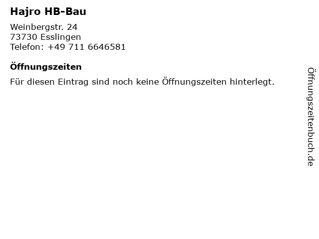 | Telefonnummer Hajro HB-Bau in Esslingen (+49 711 6646581) anrufen | |