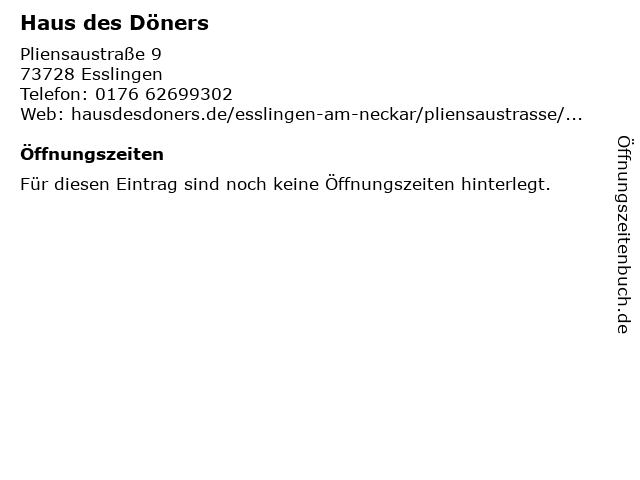 | Öffnungszeiten Haus des Döners in Esslingen anzeigen | |