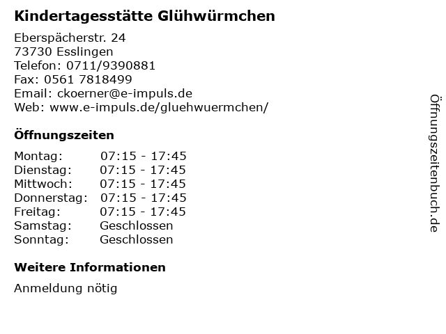 1 Stadt Esslingen - Kita/Kinderhaus Don Bosco (Regelöffnungszeit) (Entfernung: 1,50 km) Ina-Seidel-Weg 50, 73732 Esslingen 4 Evangelisches Kinderhaus Wuselvilla Lehengarten (Entfernung: 4,20 km) Lehengartenweg 11, 73776 Altbach 6 |
