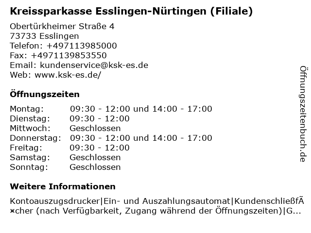 Branchen & Suchbegriffe zu Kreissparkasse Esslingen-Nürtingen (Filiale):kreissparkasse |