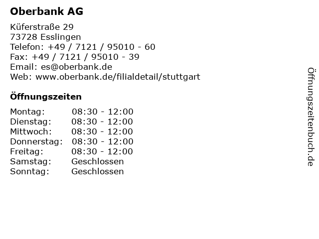 | Öffnungszeiten Oberbank AG in Esslingen anzeigen | |
