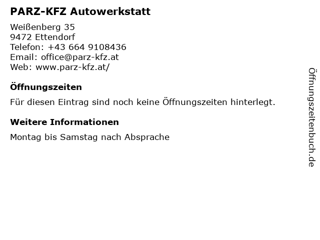| Öffnungszeiten PARZ-KFZ Autowerkstatt in Ettendorf anzeigen | |