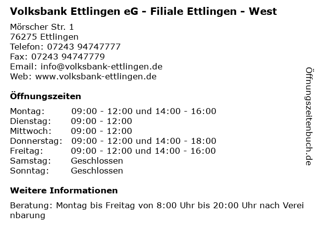 Branchen & Suchbegriffe zu Volksbank Ettlingen eG - Filiale Ettlingen - West:bank, banken, eg, geldautomat, kontoauszug, kontoauszugsdrucker, volksbank, west |
