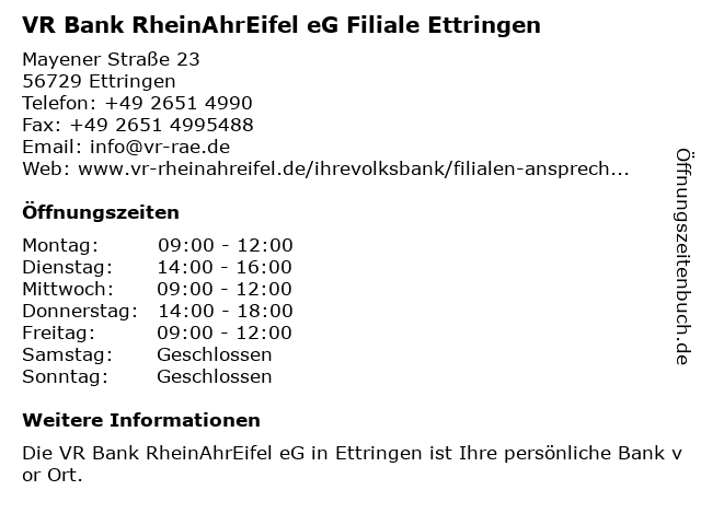 Branchen & Suchbegriffe zu VR Bank RheinAhrEifel eG Filiale Ettringen:bank, beratung, eg, ettringen, geldautomat, genossenschaft, immobilienagentur, kredit, rheinahreifel, versicherung, vr |