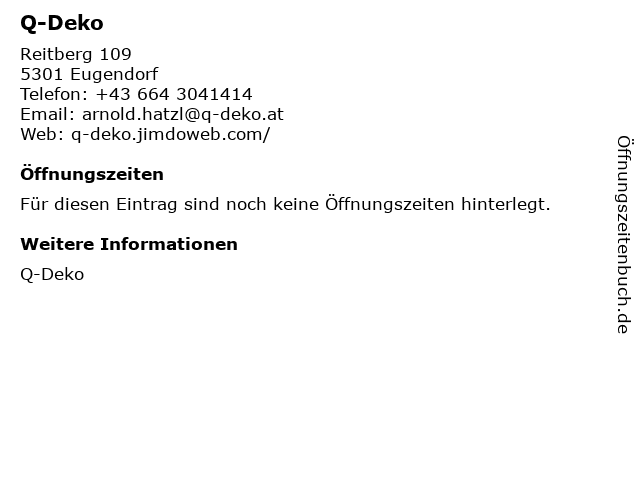 | Öffnungszeiten Q-Deko in Eugendorf anzeigen | |