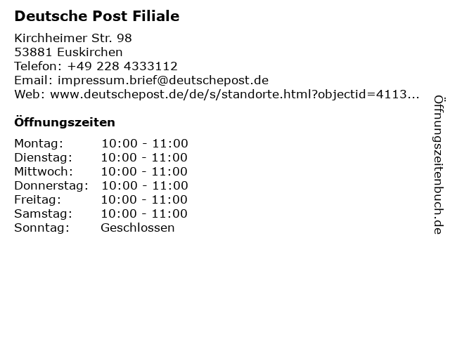 Öffnungszeiten Deutsche Post Filiale in Euskirchen anzeigen
