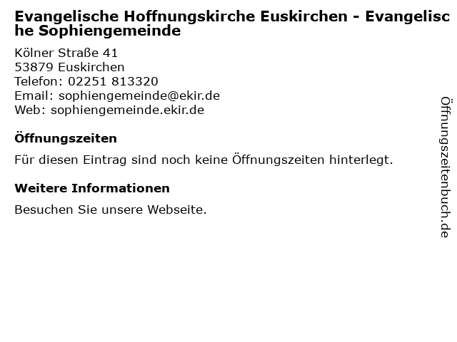 Branchen & Suchbegriffe zu Evangelische Hoffnungskirche Euskirchen - Evangelische Sophiengemeinde:evangelische, hoffnungskirche, sophiengemeinde |